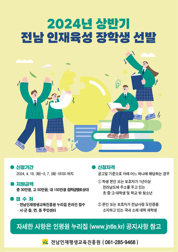 | ▲2024년 상반기 전남 인재육성 장학생 선발 홍보 포스터(사진제공=화순군) |