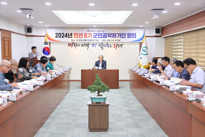 23일 군에 따르면 각계각층 군민 14명으로 이뤄진 군민공약평가단은 지난 22일 민선 8기 2년 공약 이행 실적을 평가했다. 평가위원회는 분과위원회로 나누어 4대 분야 54건의 공약 이행 실적을 꼼꼼히 점검했다.