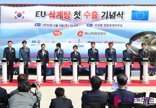 농림축산식품부와 식품의약품안전처, 농림축산검역본부는 9일 수출업체와 함께 부산항 연안여객터미널에서 한국 삼계탕의 유럽연합(EU) 첫 수출 기념식을 개최했다고 밝혔다.
