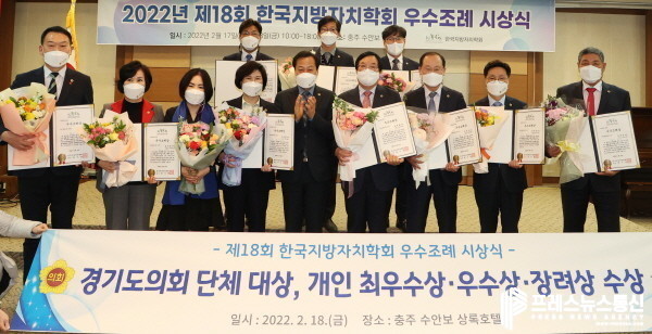 또한, 18일 경기도의회에 따르면 한국지방자치학회가 주관한 제18회 한국지방자치학회 우수조례 시상에서 경기도는 단체부문 대상 1건, 개인부문 최우수상 2건, 우수상 17건, 장려상 1건으로 총 21명의 경기도의원이 역대로 최다수상 하는 영광을 누렸다고 전했다.