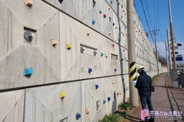 | ▲시흥시 정왕동 오이교차로 옹벽 점검 모습.(사진=시흥시) |