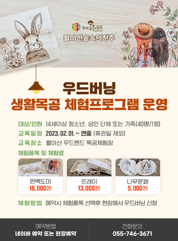 | ▲ 우드버닝 생활목공체험 안내문(사진=진주시) |