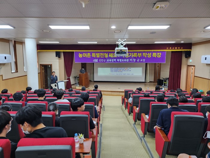 이창균 신안군 교육정책 특별보좌관은 7월 17일(월) 도초고등학교에서 교사 및 학생 그리고 일부 학부모 100여 명을 대상으로 맞춤형 대입전형 학교생활기록부 작성 및 농어촌특별전형 제도에 대해 열강했다. 앞으로 도초고등학교 명문학교로의 장기 비전을 공유하는 자리였다.