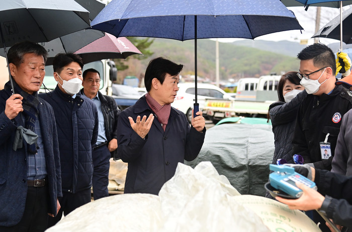 이날 매입 현장을 방문한 조규일 시장은 최근 농자재값 상승과 쌀값 하락에 따른 벼 재배 농업인의 애로사항을 듣고, 농업 현안에 대해 이야기를 나눴다.