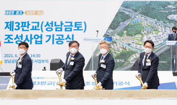 경기도와 성남시, 한국토지주택공사(LH), 경기주택도시공사(GH)는 이날 성남시 수정구 금토동 일대 사업부지에서 이재명 경기도지사와 김현준 LH 사장, 이헌욱 GH 사장, 장영근 성남부시장, 김태년 국회의원, 성남시 지역구 경기도의원, 지역 주민 및 기업체 등 90여 명이 함께한 가운데 ‘제3판교(성남금토 공공주택지구) 조성사업’ 기공식을 개최했다.