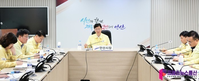 | ▲ 이민근 안산시장이 지난 21일 시청 재난종합상황실에서 열린 여름철 수돗물 및 물놀이시설 안전관리 대책 회의를 주재 하고 있다.(사진=안산시) |