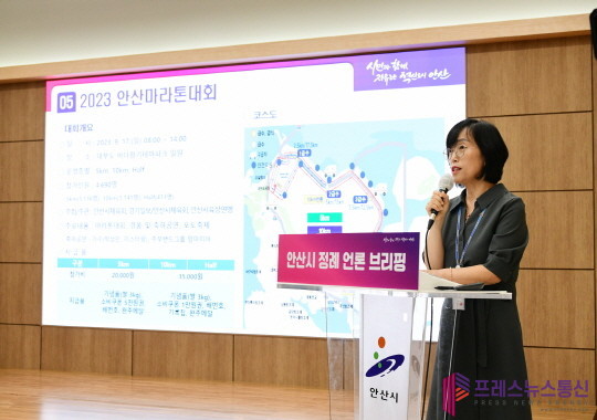 ▲안산시는 12일 안산시청 제1회의실에서 언론브리핑을 열고, 이정숙 문회체육관광국장이 '2023 가을 시민과 함께하는 다채로운 문화행사' 추진계획을 발표하고 있다.(사진= 안산시) |