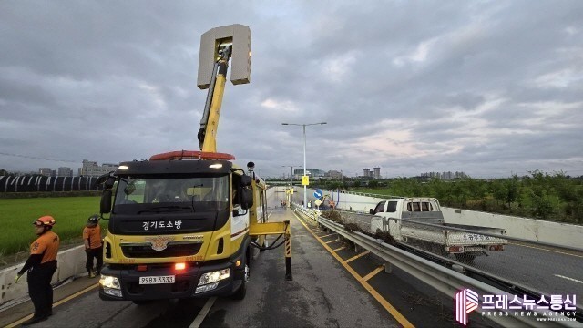 한편, 복구 현장에는 경기도에 올해 초 1대 도입된 다굴절무인방수탑차가 투입됐다. 다굴절무인방수탑차는 차 밖에서 조종할 수 있는 차량으로 국내에는 전라남도에도 배치돼 있지만 경기도 도입차는 펌프, 팔 길이 등이 완전히 개량된 전국 최초 모델이다.