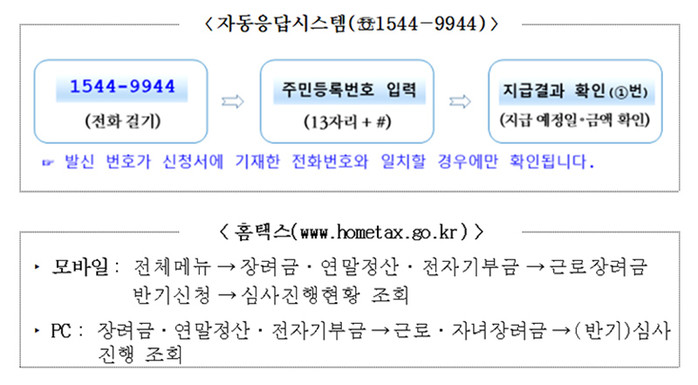 신청 내용에 대한 심사 결과는 모든 신청자에게 우편 또는 모바일(전자문서)로 안내됐으며 장려금 상담센터, 자동응답시스템, 홈택스(PC, 모바일)에서도 확인할 수 있다.