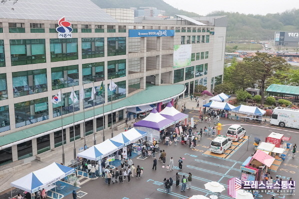 ▲각종 체험이 한창인 시청 뒤뜰 전경(사진=시흥시) |
