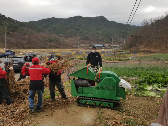 영농부산물 파쇄는 28일을 시작으로 마을별 신청받은 농가에 순차적으로 작업을 지원하며, 산불예방에 앞장서고 있다.
