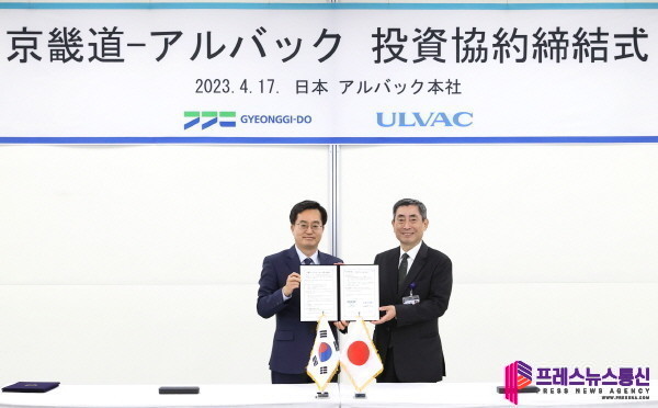 김동연 지사는 17일 오후 가나가와현 지가사키시 알박(ULVAC)그룹 본사에서 이와시타 세츠오(Iwashita Setsuo) 대표이사와 이런 내용을 담은 ‘경기도-주식회사 알박 투자양해각서’에 서명했다.