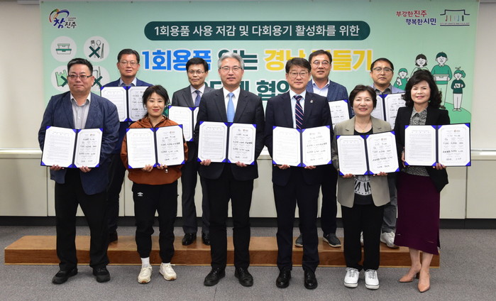 신종우 진주시 부시장은 “이번 협약을 통해 동창회뿐만 아니라 다양한 행사에서 다회용기 사용을 늘리는 문화가 확산되길 바란다”며 “1회용품 없는 진주를 만들기를 위해 다양한 단체 및 시민들이 참여해주길 바란다”라고 말했다.