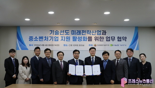 [프레스뉴스] 류현주 기자= 경기도·서울대학교 공동출연법인 차세대융합기술연구원(원장 김연상, 이하 ‘융기원’)은 4월 6일 수원시 광교 소재 융기원에서 기술보증기금과 기술선도 미래전략산업 육성과 중소벤처기업 지원 활성화를 위한 업무협약을 체결했다고 밝혔다.