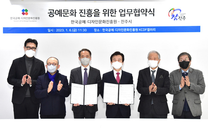 [프레스뉴스] 정재훈 기자= 진주시는 지난 6일 한국공예.디자인문화진흥원과 서울 종로구 KCDF갤러리에서 공예문화 및 상호교류 활성화를 위한 업무협약을 체결했다.