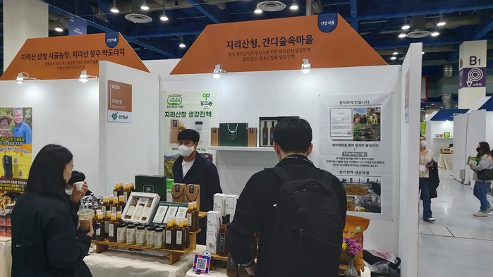이번 행사에는 지리산동의촌, 대포곶감정보화마을, 지리산청, 간디숲속마을 등이 참여해 도라지발효환, 생강 진액, 꿀 등 산청의 우수 농특산물을 전시하고 홍보했다.