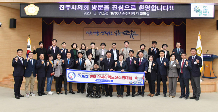 시의회는 지난달 31일 2023순천만국제정원박람회 개막식 참석에 앞서 자매결연을 맺은 순천시의회와 만나 인사를 나누고 2023 진주 아시아역도선수권대회 홍보 캠페인을 진행했다.