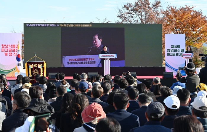 개장식에는 성낙인 군수, 홍성두 군의회 의장, 김보학 군체육회장, 김태환 경남파크골프협회장 등 주요 인사들이 참석했다. 행사는 식전행사, 개회선언, 경과보고, 대회사, 선수대표 선서, 테이프 커팅, 내빈 시타 순으로 진행됐다.