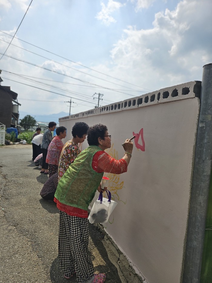 | ▲고달면 목동1구 주민들이 벽화그리기 행사에 동참하고 있다(사진제공=곡성군) |