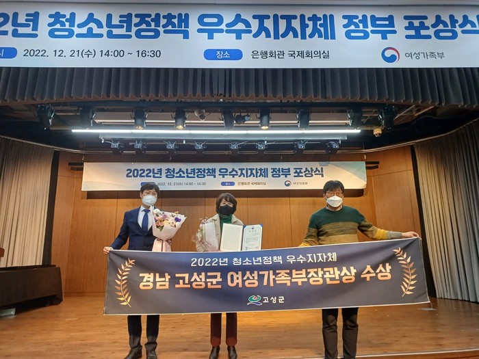 | ▲ 고성군이 2022년 청소년정책 우수지자체로 선정되어 여성가족부 장관상을 수상했다.(사진=고성군) |