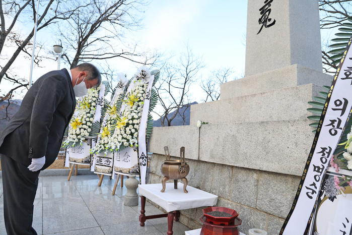 | ▲ 이승화 산청군수가 신년을 맞아 충혼탑 참배를 하고 있다.(산청군 제공) |