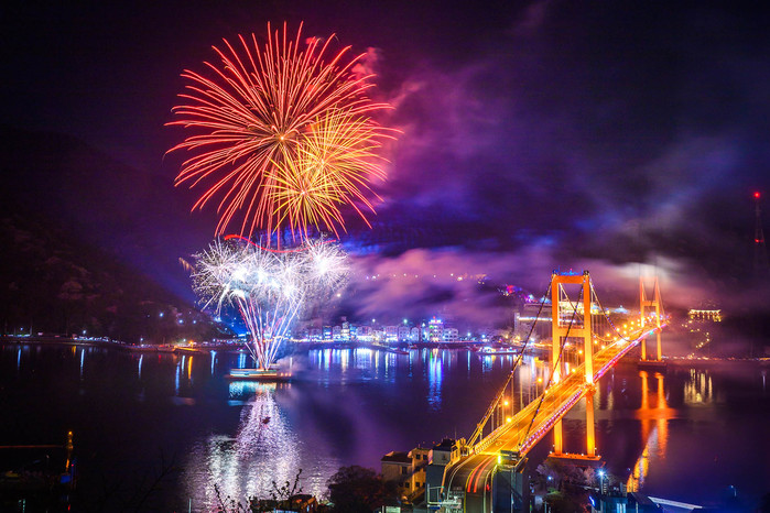 | ▲ 남해대교 개통 이후 처음으로 진행된 ‘해상 불꽃 쇼’(사진=남해군) |