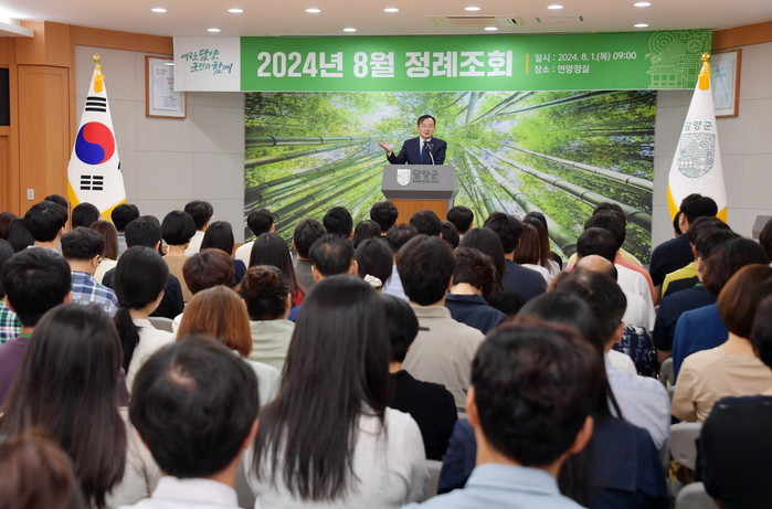 이날 정례 조회에서는 담양군 공직자 동호회인 독서모임 ‘너독나독’팀의 성과발표와 2024년 상반기 베스트공무원 증서 시상, 민원 처리 기간 단축 마일리지제 운영 평가 우수 공무원 시상을 진행했다.