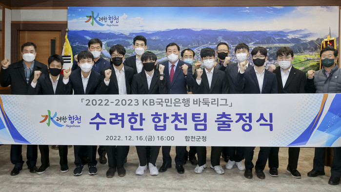 [프레스뉴스] 정재훈 기자= 합천군이 국내 최대 기전인 2022-2023 KB국민은행 바둑리그 2연패를 위한 수려한 합천 팀 선수 구성을 마치고 16일 합천군청에서 출정식을 가졌다.