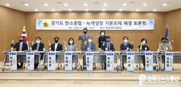 [프레스뉴스] 김대일 기자= 경기도의회 최승원 의원(더불어민주당, 고양8)이 대표발의로 준비 중인 「경기도 탄소중립ㆍ녹색성장 기본조례안」에 대해 관계전문가 및 시민단체 의견수렴을 위한 토론회가 6월 3일(금) 경기도의회 대회의실에서 개최됐다.