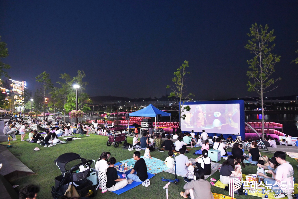 [프레스뉴스] 장현준 기자= 한여름 밤, 호숫가를 가로지르는 나무 덱이 수려한 불빛으로 반짝이는 시흥 은계호수공원. 가족들과 산책 나온 시민들이 돗자리를 펴고 옹기종기 모여 앉아 스크린에서 상영 중인 영화 속으로 빠져든다.