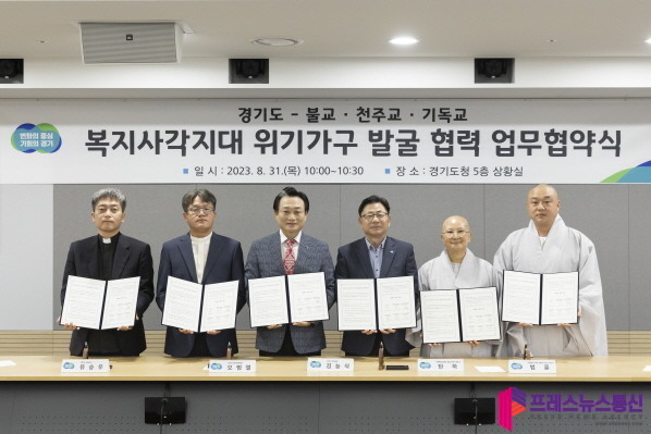 김능식 경기도 복지국장은 31일 도청에서 ▲경기도기독교총연합회 ▲대한불교조계종 제2교구본사 용주사 ▲대한불교조계종 제25교구본사 봉선사 ▲천주교 수원교구 ▲천주교 의정부교구 등 5개 종교단체와 ‘경기도 희망 보듬이 참여 업무협약’을 체결했다.