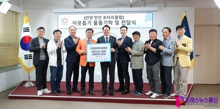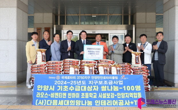 시는 지난 29일 안양만안로타리클럽으로부터 백미 10kg 100포(490만원 상당)를 기탁받아 기초생활수급자 및 차상위계층 등 복지대상자 100가구에 배부했다.