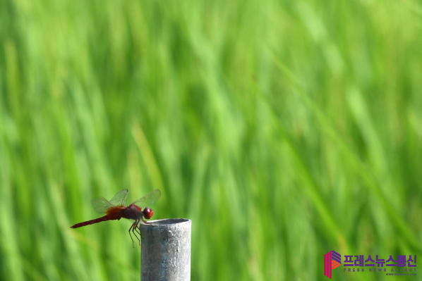 시흥시 정왕동 함줄도시농업공원의 들판은 아직 푸른빛을 띠고 있지만, 곳곳에 노랗게 물들기 시작한 벼에는 황금 쌀알이 알차게 영글어 있다. 뜨거운 한낮의 햇볕에 지친 잠자리가 들판 위에 잠시 쉬어가며 숨을 고르고, 땡볕 아래에서는 노란 옥수수가 알알이 익어간다.