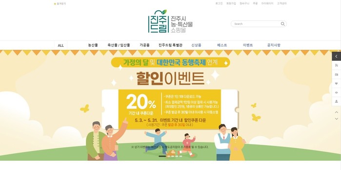 [프레스뉴스] 정재훈 기자= 진주시가 5월 가정의 달을 맞아 시 직영 온라인 농특산물 쇼핑몰 ‘진주드림 쇼핑몰’에서 특별 할인 이벤트를 실시한다.