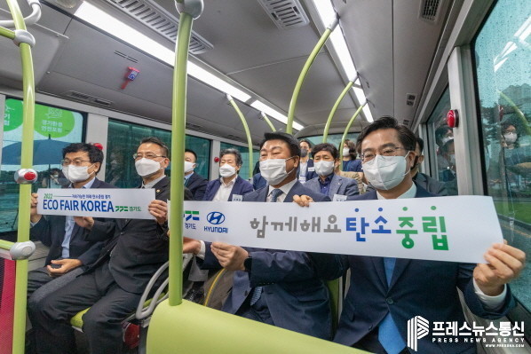 이 자리에는 현대자동차그룹 윤석현 전무가 동승해 수소버스의 탄소저감 효과와 미래 운송수단으로서 수소버스의 가능성을 소개했다. 수소버스는 행사가 진행되는 동안 광교중앙역과 수원컨벤션센터 사이를 하루 5회 운행하며 일반 도민들도 사전신청 또는 현장 안내소에서 시승 예약 후 탑승할 수 있다.