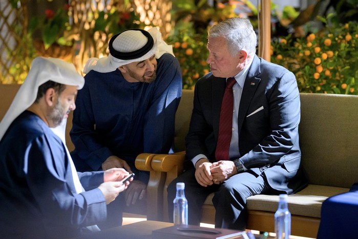 [프레스뉴스] 채정병 특파원=17일(현지시간) 걸프국가들과 요르단, 이라크 내 미국 관련 시설에 대한 이란의 무차별 공격이 격화되고 있는 상황에서 압둘라 2세(오른쪽) 요르단 국왕이 걸프국 정상들과의 공동대응과 협력을 위한 긴급 순방에 나선 가운데 UAE에서 무함마드 빈 자이드 알 나흐얀 대통령과 회담하고 있다. (사진=요르단 왕실 제공)
