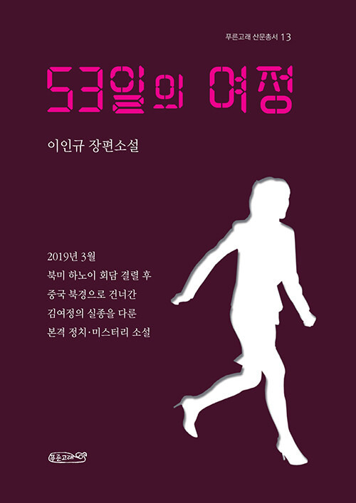 [프레스뉴스] 정재훈 기자= 이인규 작가의 네 번째 장편소설인 53일의 여정은 2019년 3월 북미 하노이회담 결렬 후 중국 북경으로 건너간 김여정의 실종을 다룬 본격 정치 미스터리 소설이다.