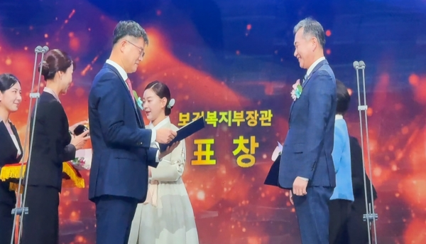 | ▲ 허숭 안산도시공사 사장이 보건복지부 장관 표창을 수상하고 있다.(사진=안산도시공사) |
