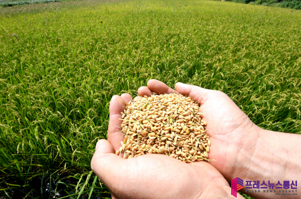 [프레스뉴스] 장현준 기자= 푸른 논이 황금빛으로 물든 가을 초입, 알알이 영근 벼가 바람에 살랑이는 논에서 콤바인이 부지런히 쌀을 수확하고 있다. 황금빛 벼 사이를 지나가는 콤바인뒤로 가을의 풍요로움이 가득 채워진다.