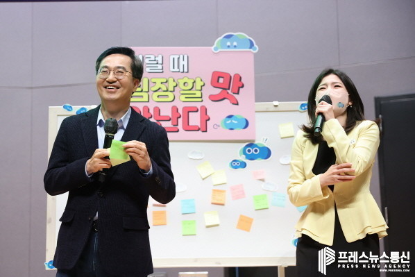 수괴가 되겠다는 김 지사에 발언에 참석한 팀장들은 큰 박수를 치며 동참의사를 보여주기도 했다. 이어진 맞손토크에서는 ‘팀원들과 어렵고 힘든 일을 함께하면서 으쌰으쌰할 때 행복하다’, ‘갑자기 국장, 과장 공석으로 대행해야 할 때 팀장할 맛 안 난다’ 등 팀장들이 현장에서 작성한 메모를 즉석에서 김 지사가 읽으며 소통과 공감의 시간을 가졌다.