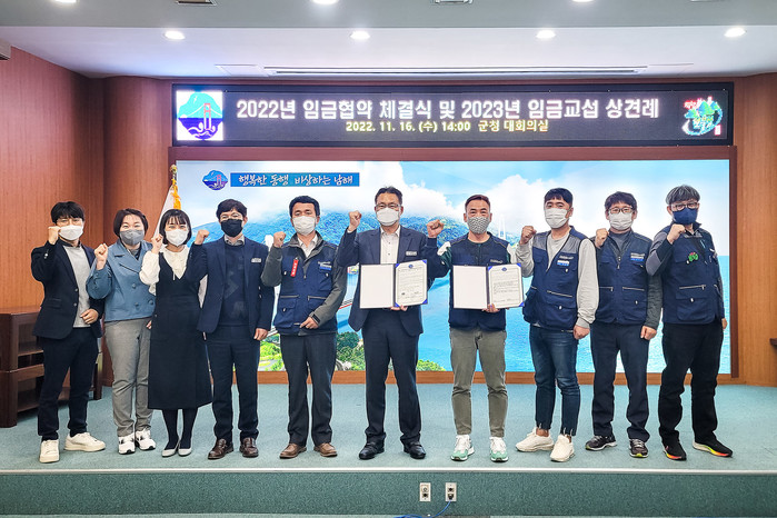 하순철 행정과장은 “협상 과정이 결코 쉽지만은 않았지만, 노사 양측이 조금씩 서로 양보해 합의가 이루어졌다”며 “노사가 상생과 협력의 동반자 관계로 맡은 바 업무에 최선을 다해 남해 군민의 행복과 남해발전을 위해 함께 노력해 나가자”고 말했다.