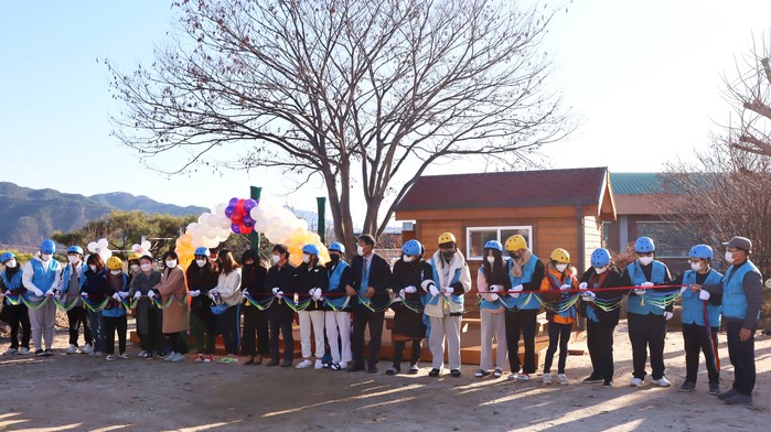 이날 준공식에서는 집짓기 과정을 엮은 동영상 시청과 감상문 발표, 수료증·장학금 전달, 테이프 커팅, 현판식, 사진전 등이 진행됐다.