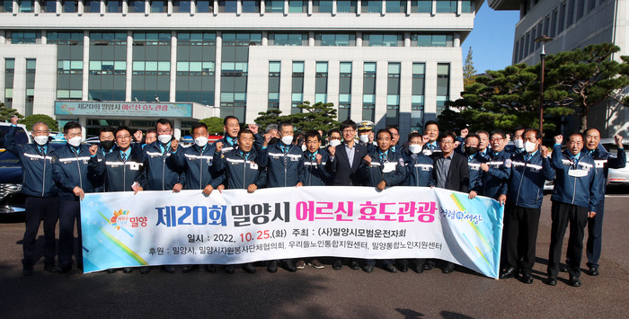 모범운전자회는 어르신들의 기분전환과 외로움을 달래고 사랑과 정이 넘치는 아름다운 밀양을 만들기 위해 2003년 전국 모범운전자회 최초로 효도관광을 시작해 올해 20년째 행사를 이어오고 있다.