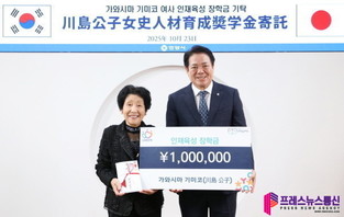 ‘안양시 명예시민’ 가와시마 상임고문, 안양시인재육성재단에 100만엔 기부