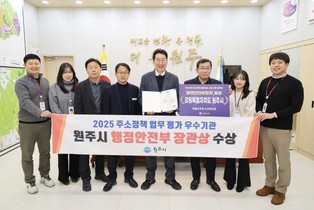 원주시, 주소정책 업무 평가 '행정안전부장관 표창' 수상