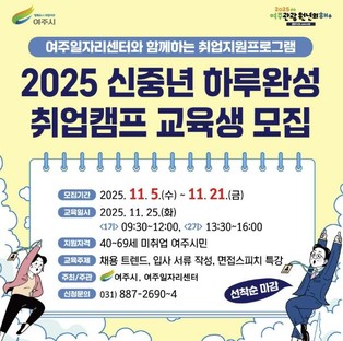 여주시, 2025 신중년 하루완성 취업캠프 교육생 모집