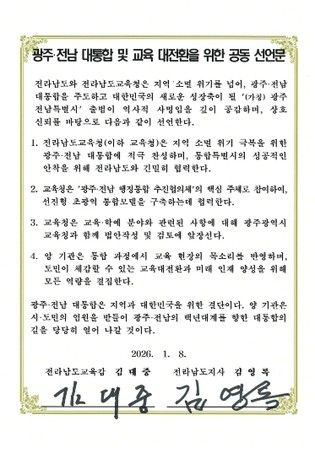 전라남도교육청-전라남도, 공동선언문 발표 “광주·전남 대통합과 교육대전환 긴밀히 ...