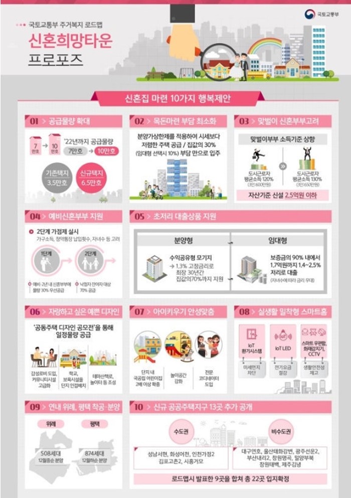 (이슈타임)곽정일 기자=정부가 신혼부부를 위한 주거지원 방안으로 신혼희망타운를 10만 가구로 늘리겠다고 밝히면서 신청과 분양 조건에 관한 관심이 집중되고 있다.