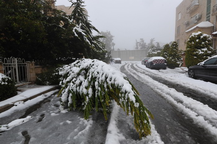 [프레스뉴스] 채정병 특파원=18일(현지시간) 요르단 암만의 주택가 가로수가 쌓인 눈 무게를 견디지 못해 부러져 있다.