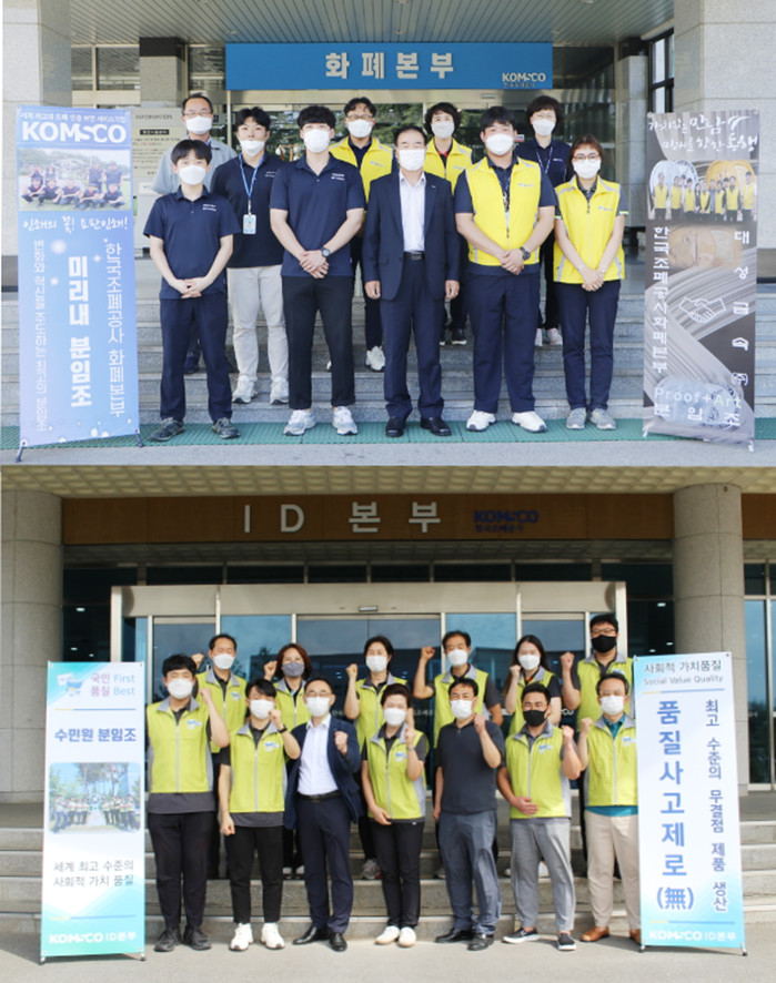 | ▲조폐공사는 ‘제46회 전국 품질분임조 경진대회’에 3개팀이 참가해 은상 3개를 수상, 18년 연속 대통령상을 획득했다. 위쪽 화폐본부 ‘Proof+Art’ 및 ‘미리내’ 분임조, 아래쪽 ID본부 ‘수민원’ 분임조. |